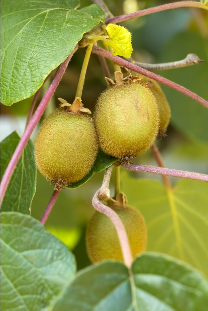 Frukt med gulgrønn grunnfarge og røde prikker (“dinosaur egg”)